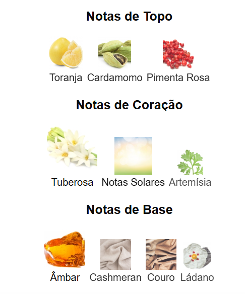 NOTAS DE CORAÇÃO: Tuberosa, Notas Solares e Artemísia.